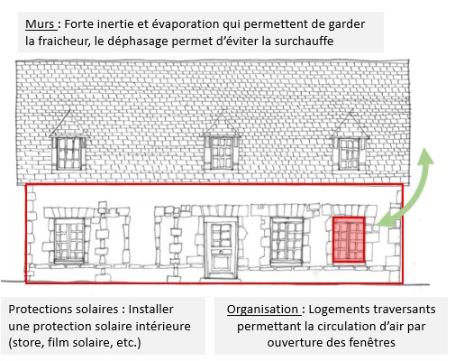 | Les aspects participant au confort en été : | Inertie thermique : La forte inertie de la pierre permet de lutter contre les vagues de chaleur. |