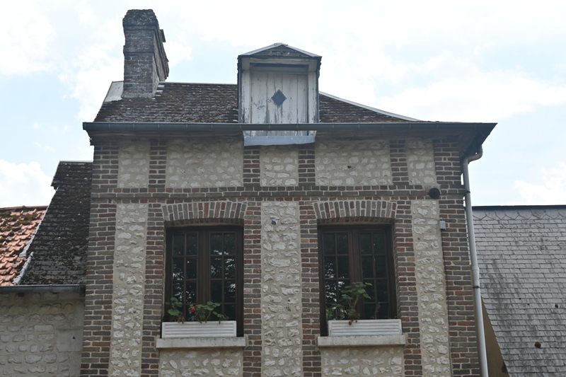 - La structure en mur porteur est visible depuis l’extérieur (pas d’enduit), et l’appareillage des briques indique la manière dont sont édifiés les murs. Dans le cas des murs porteurs composites, la présence de briques traduit la présence de renforts à des endroits stratégiques (les silex ou moellons étant moins stables du fait de leur géométrie et de leur résistance).