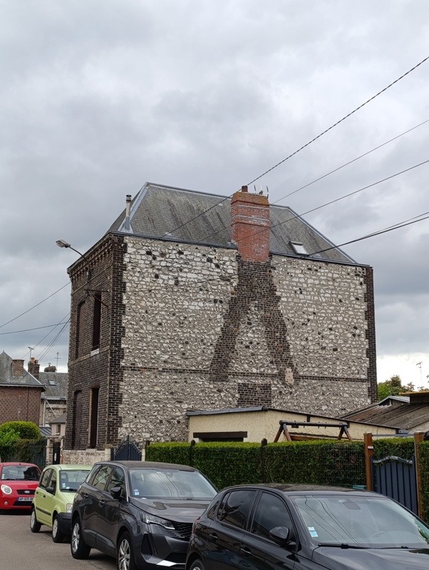 Maison ou petit immeuble en brique et silex ou brique et moellons.
