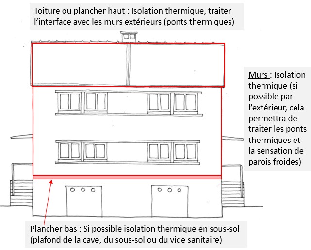 - Leviers pour améliorer la performance énergétique du bâtiment (3 points clés permettant d’améliorer la performance de l’enveloppe du bâtiment et qui ne déteriorent pas sa qualité patrimoniale) :