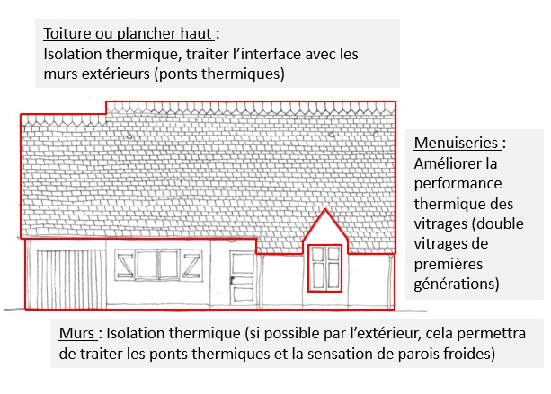 - Leviers pour améliorer la performance énergétique du bâtiment (3 points clés permettant d’améliorer la performance de l’enveloppe du bâtiment et qui ne déteriorent pas sa qualité patrimoniale) :