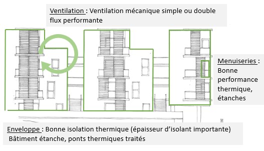 - Eléments participant à la bonne performance énergétique du bâtiment (3 points clés) :