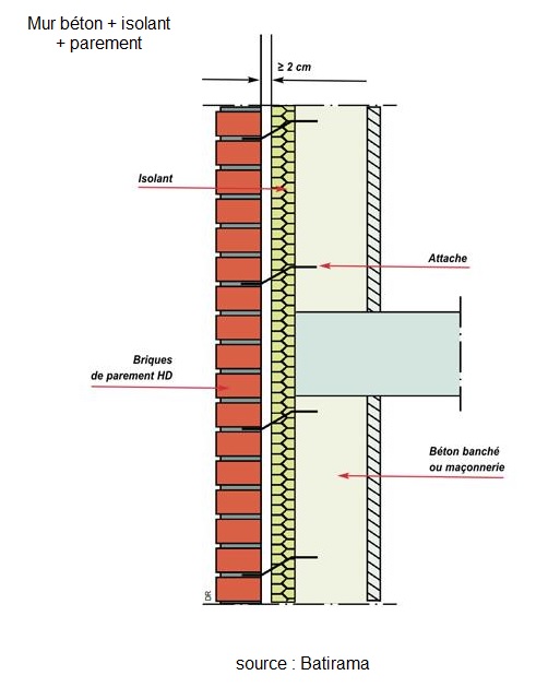 Dans tous les cas il s’agit généralement de constrctions en ossature béton ou bois, d’un mur en béton banché ou préfabriqué multicouche, d’un isolant (plutôt extérieur) ainsi que d’un enduit à extérieur et une cloison de type plaque de platre en intérieur. On trouve parfois si besoin un pare-vapeur.
